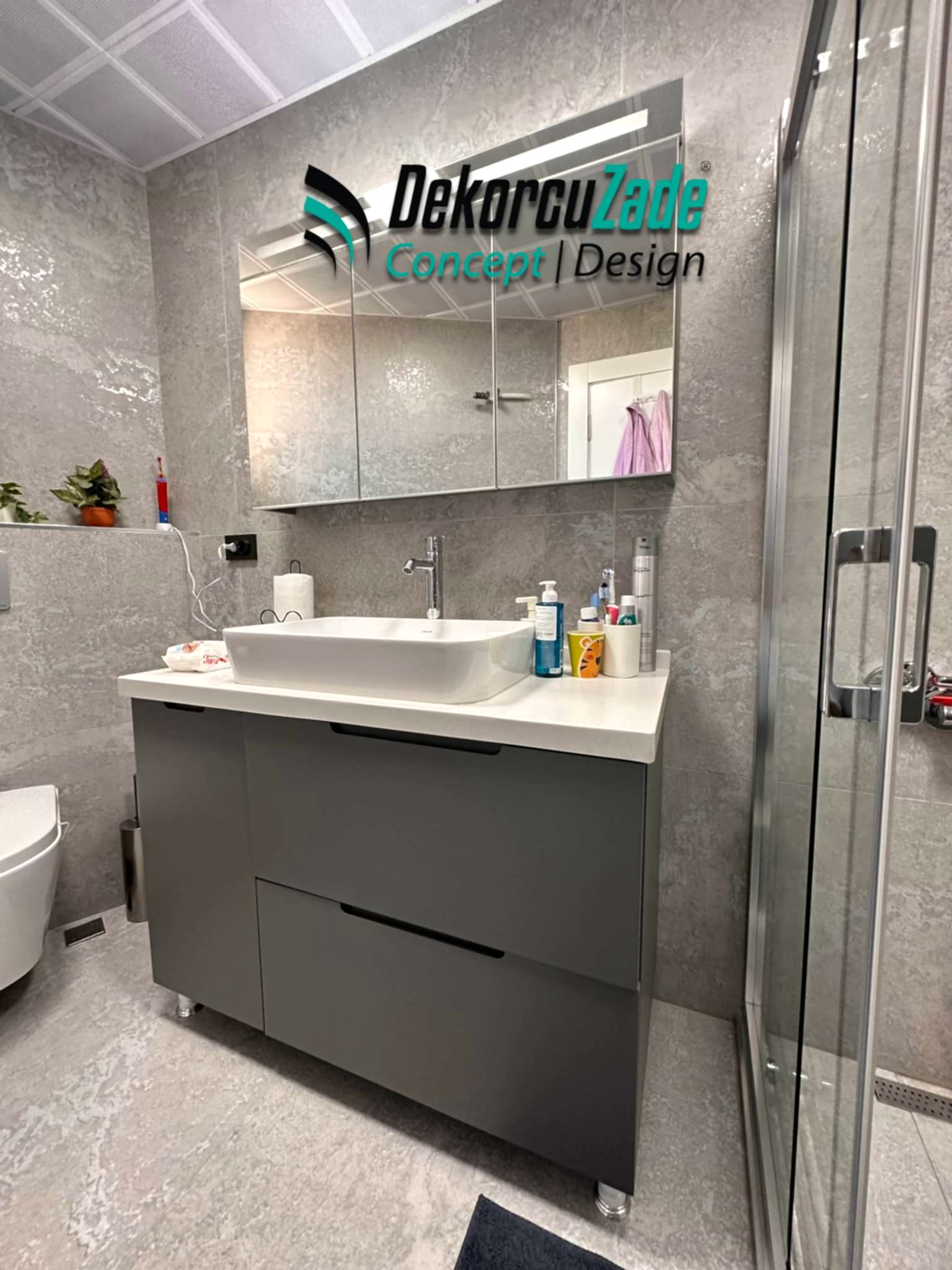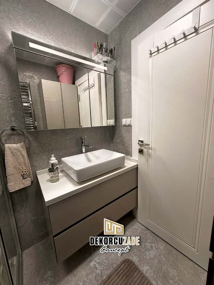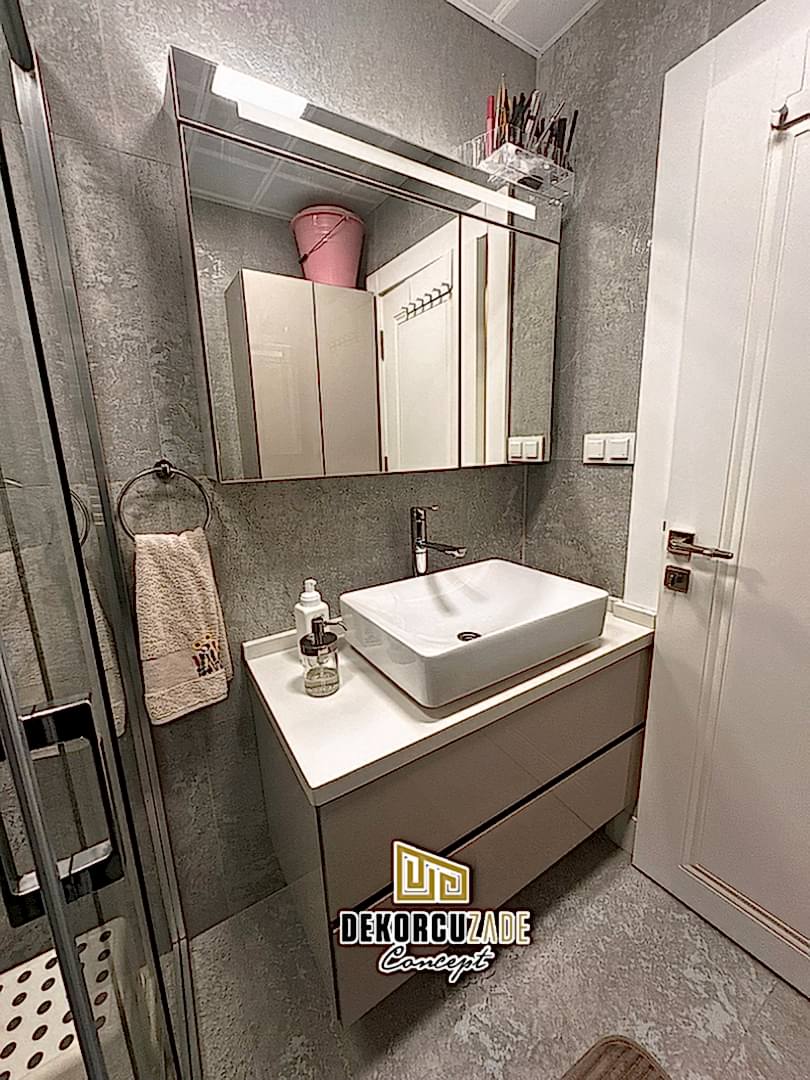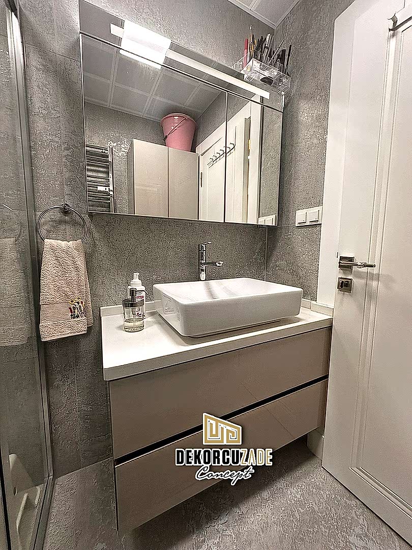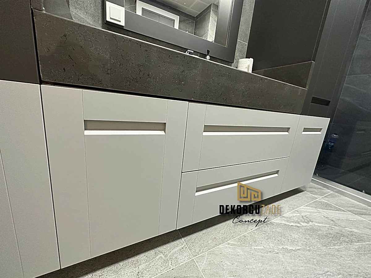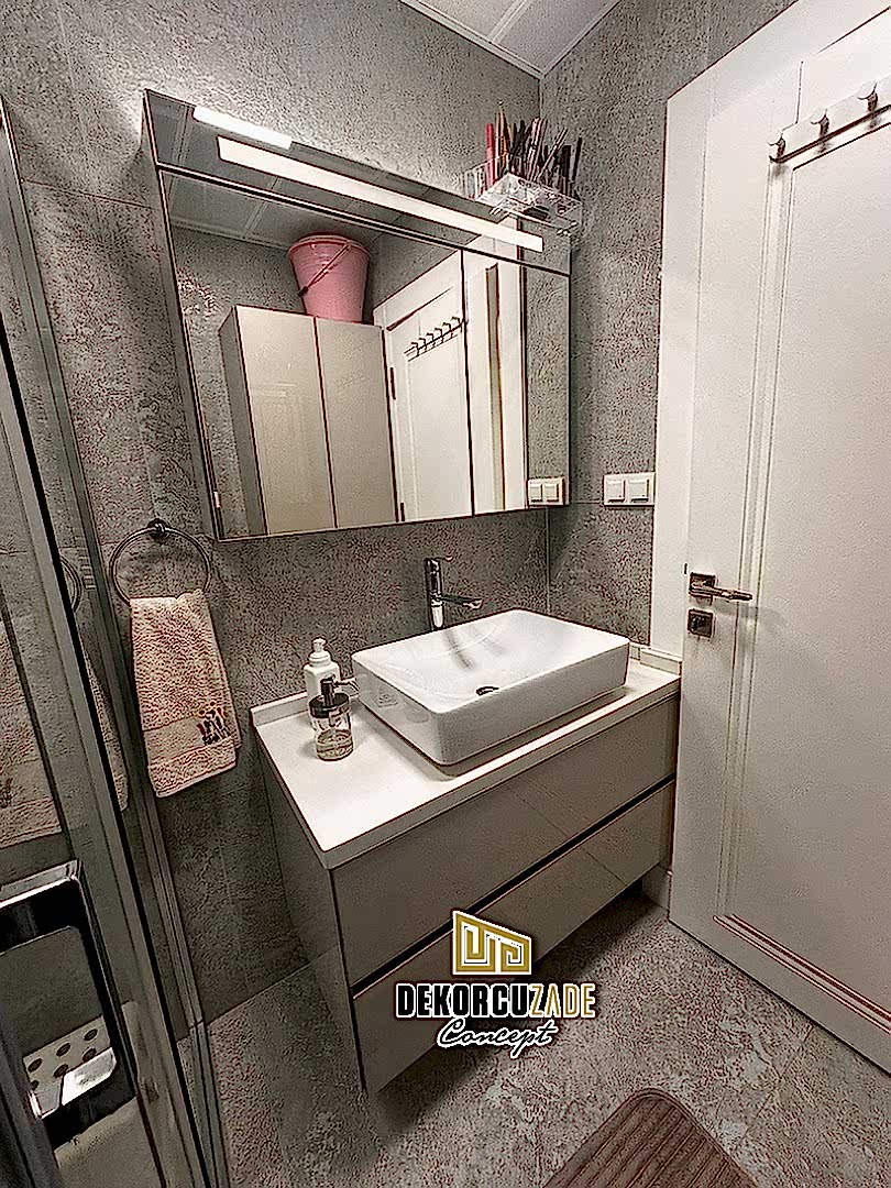 Biz DekorcuZade Concept olarak fabrikalarımızda sadece banyo dolabı üretimi yapmakla kalmıyor, bunun yanında uzman tadilat ekibimizle birlikte banyonuzun tüm ihtiyaçlarını tek bir elden karşılıyoruz. Profesyonel ve kendi bünyemizdeki ekiplerimizle, banyonuzda ihtiyaç duyulan tüm fayans işleri, tesisat işleri, tavan ve zemin uygulamalarını gerçekleştiriyoruz. Üstelik musluğunuza kadar takıp teslim ediyoruz, böylece müşterilerimize tam anlamıyla anahtar teslim bir hizmet sunuyoruz.