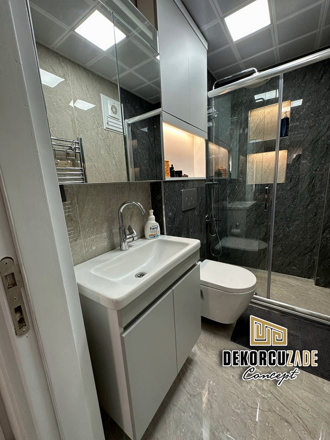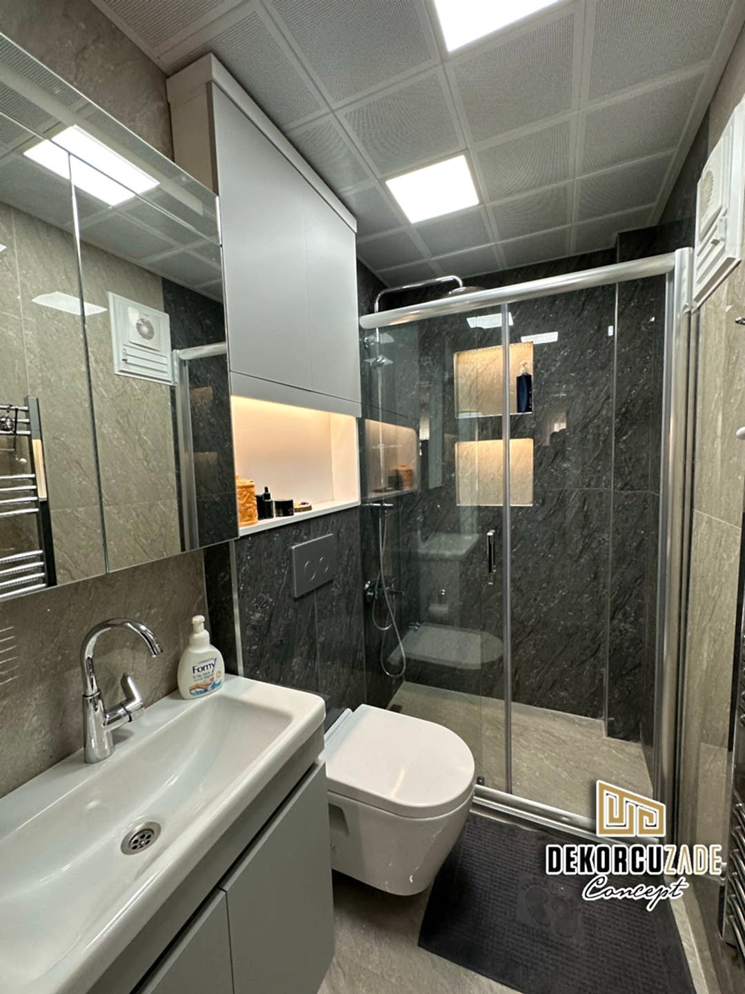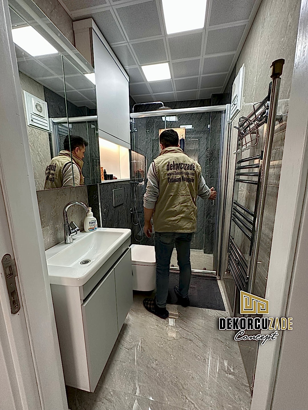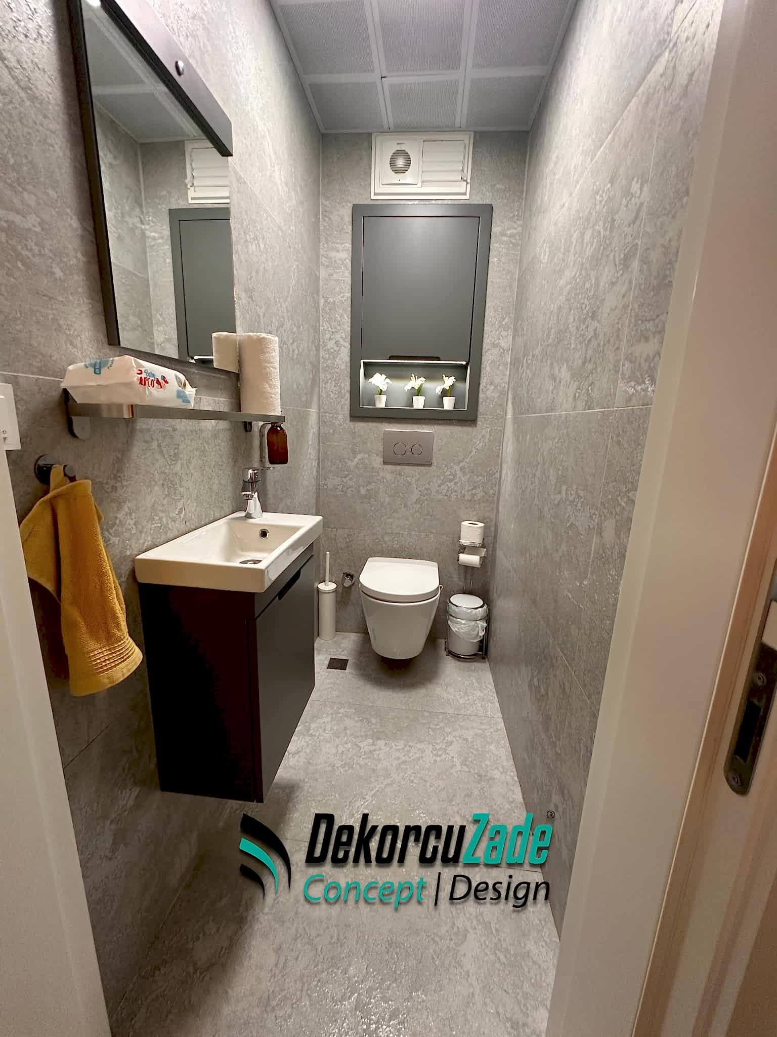 Biz DekorcuZade Concept olarak fabrikalarımızda sadece banyo dolabı üretimi yapmakla kalmıyor, bunun yanında uzman tadilat ekibimizle birlikte banyonuzun tüm ihtiyaçlarını tek bir elden karşılıyoruz. Profesyonel ve kendi bünyemizdeki ekiplerimizle, banyonuzda ihtiyaç duyulan tüm fayans işleri, tesisat işleri, tavan ve zemin uygulamalarını gerçekleştiriyoruz. Üstelik musluğunuza kadar takıp teslim ediyoruz, böylece müşterilerimize tam anlamıyla anahtar teslim bir hizmet sunuyoruz.