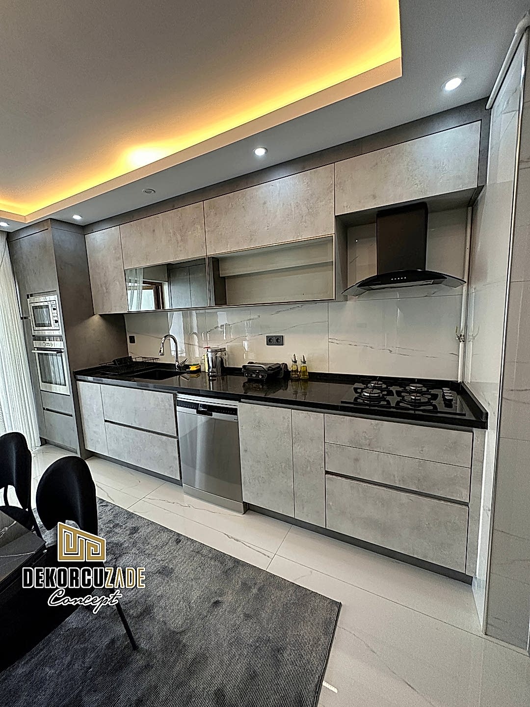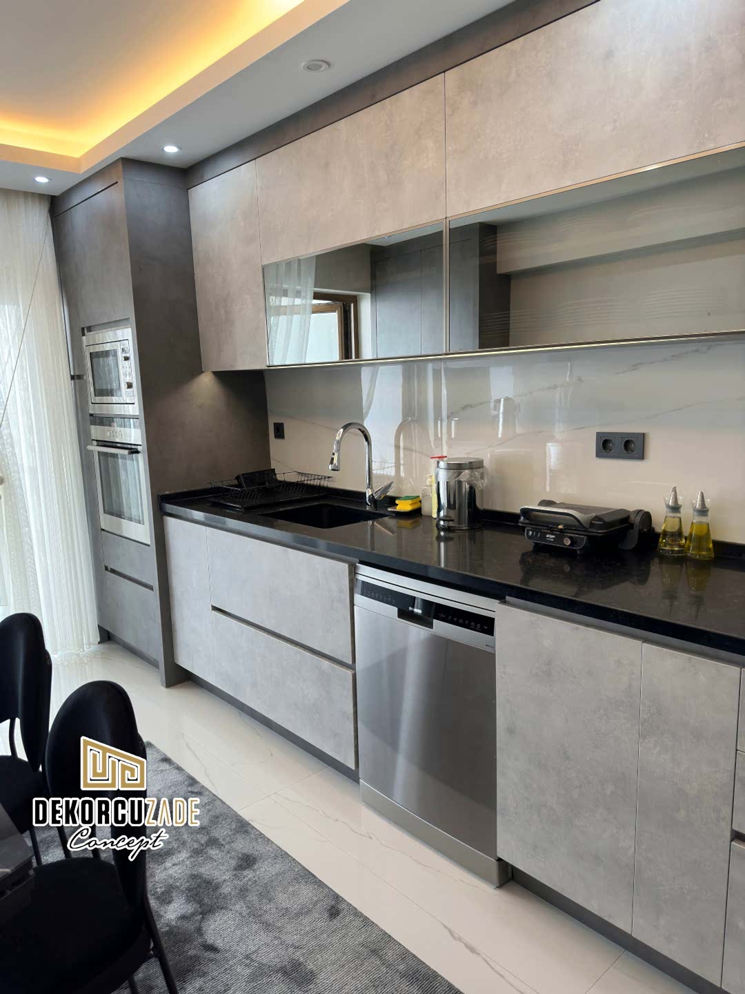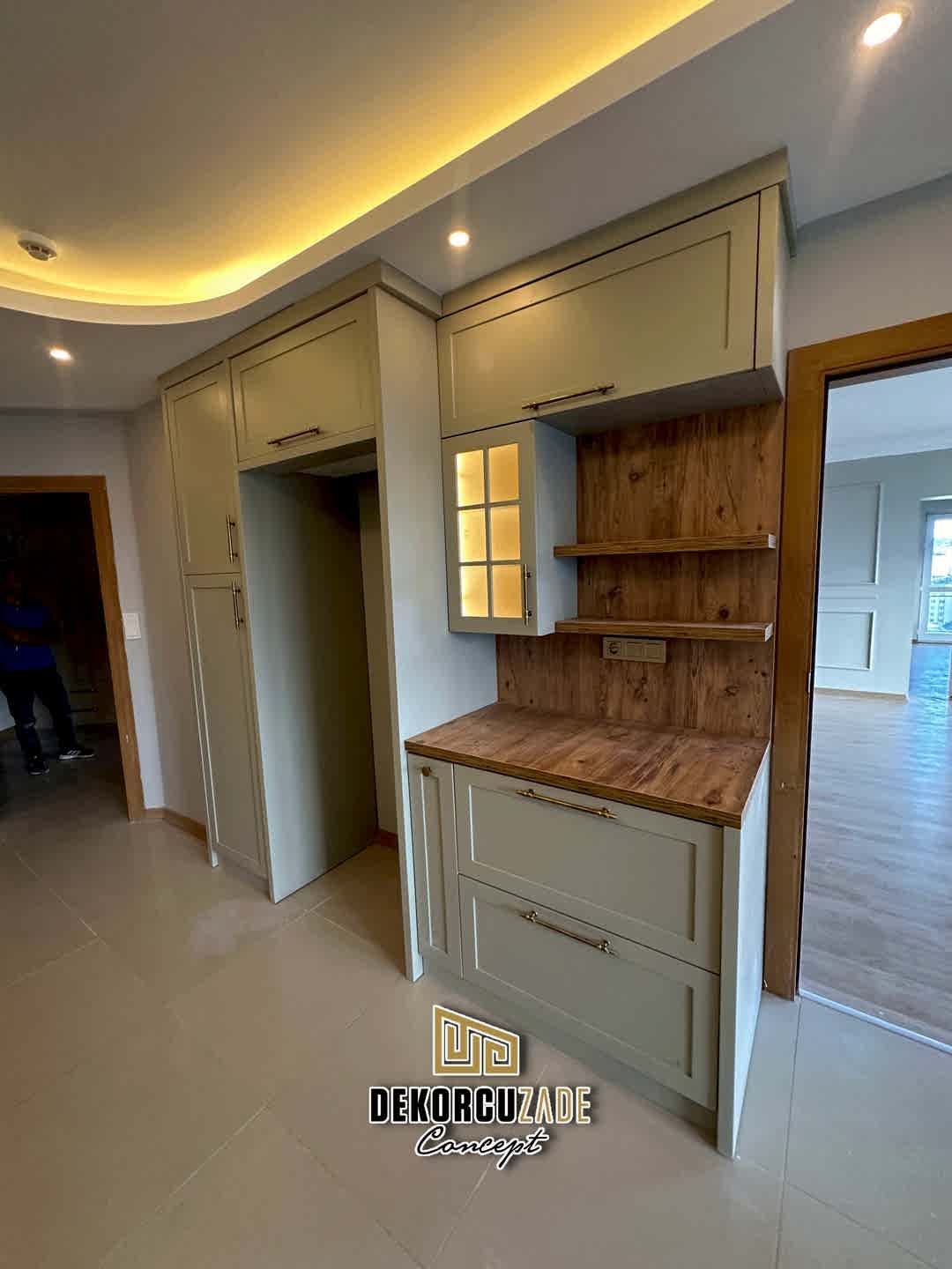 Firmamız, mutfak dolabını takıp gitmekle kalmaz; sizlere anahtar teslim dekorasyon hizmeti sunar. Tüm mobilyalar Siteler’de bulunan DekorcuZade fabrikalarında üretilir ve tadilat ekibi, DekorcuZade Mimarlığın kendi maaşlı personelidir. Dekorcuzade, sokaktan usta toplamaz ve hiçbir dalda aracı olmadan çalışan, tüm personelini kendi bünyesinde barındıran Türkiye’nin tek dekorasyon ve mutfak dolabı firmasıdır.
