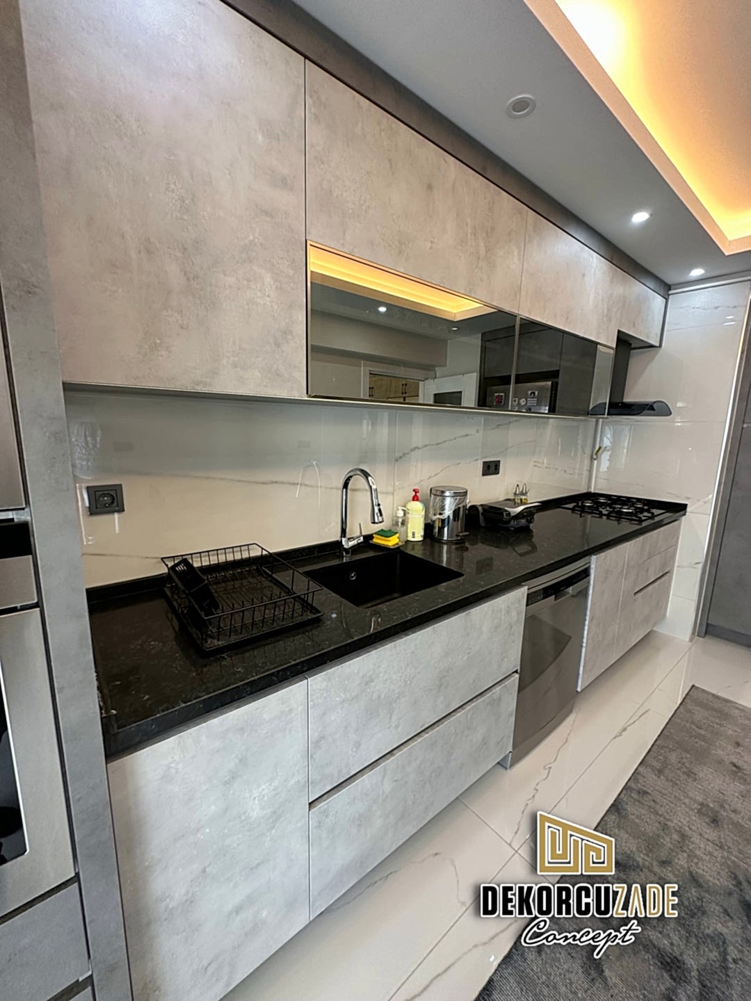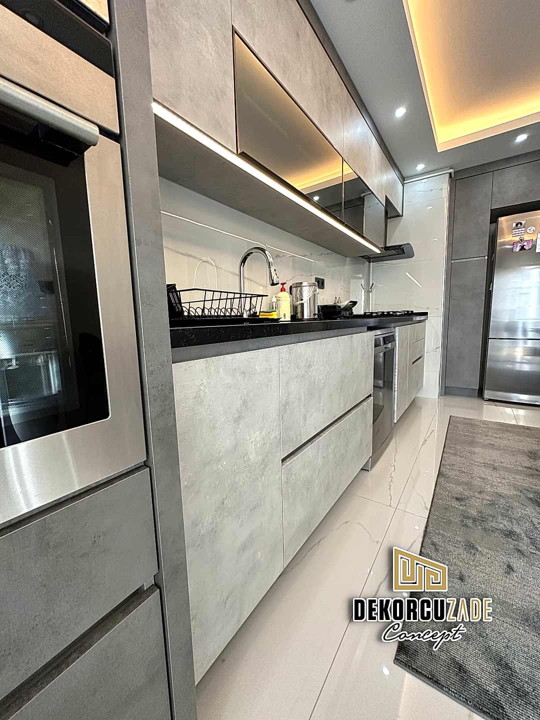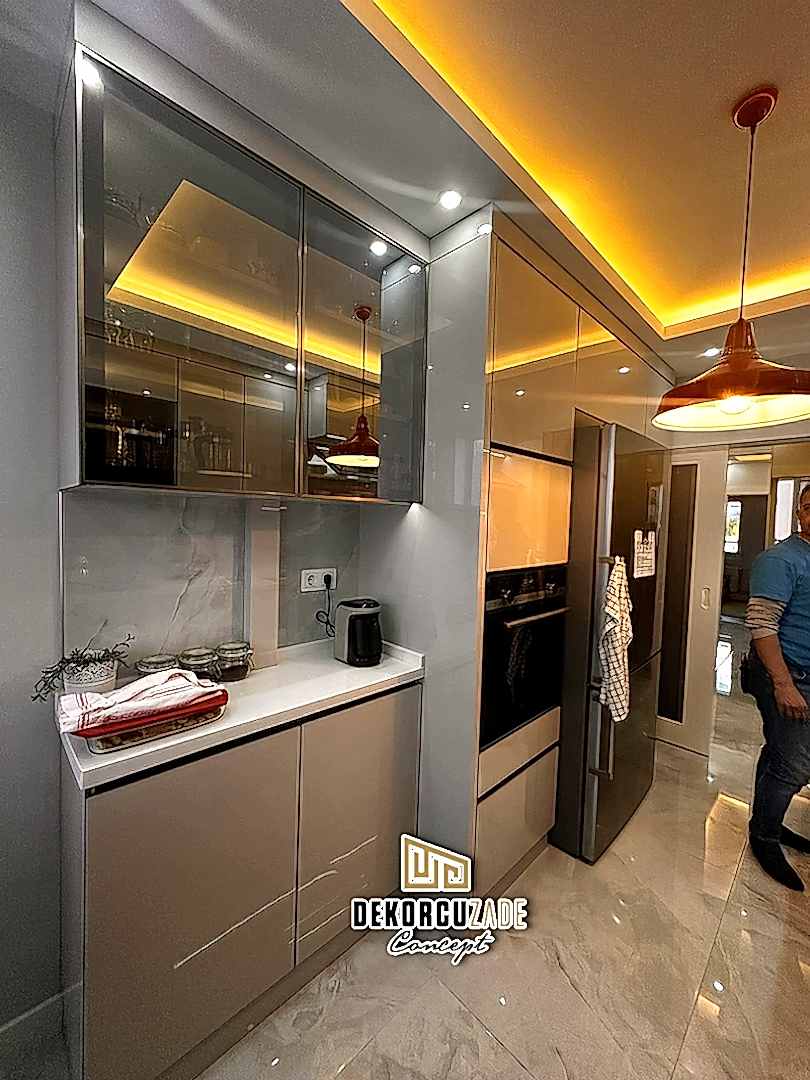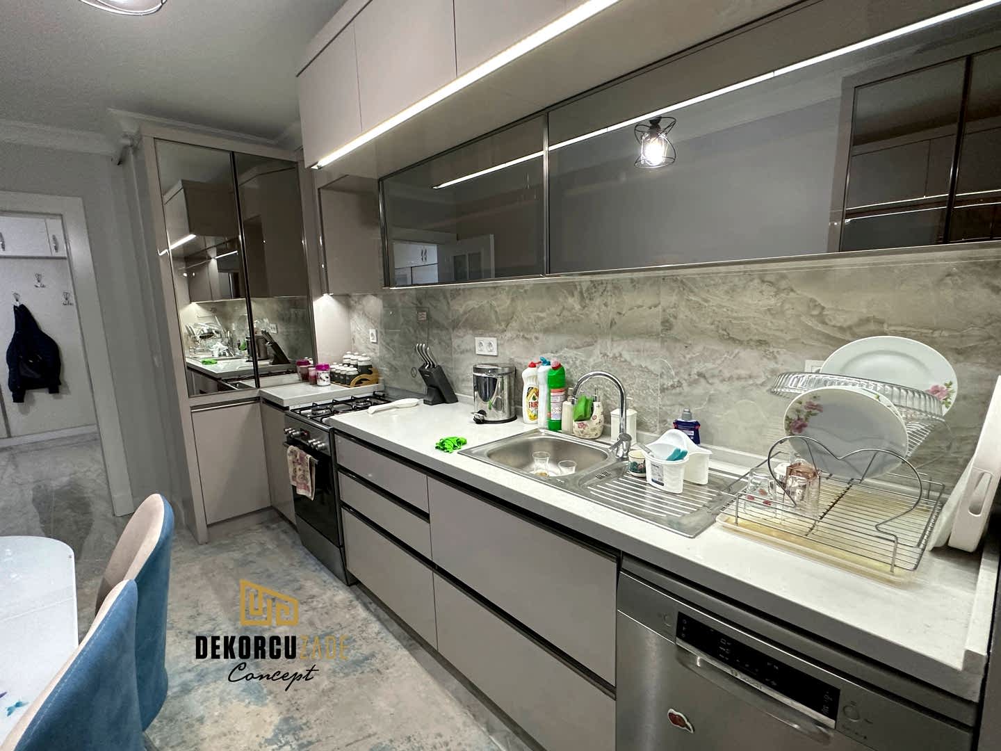 Firmamız, mutfak dolabını takıp gitmekle kalmaz; sizlere anahtar teslim dekorasyon hizmeti sunar. Tüm mobilyalar Siteler’de bulunan DekorcuZade fabrikalarında üretilir ve tadilat ekibi, DekorcuZade Mimarlığın kendi maaşlı personelidir. Dekorcuzade, sokaktan usta toplamaz ve hiçbir dalda aracı olmadan çalışan, tüm personelini kendi bünyesinde barındıran Türkiye’nin tek dekorasyon ve mutfak dolabı firmasıdır.