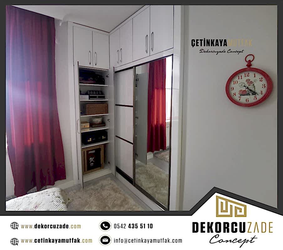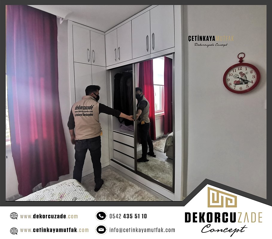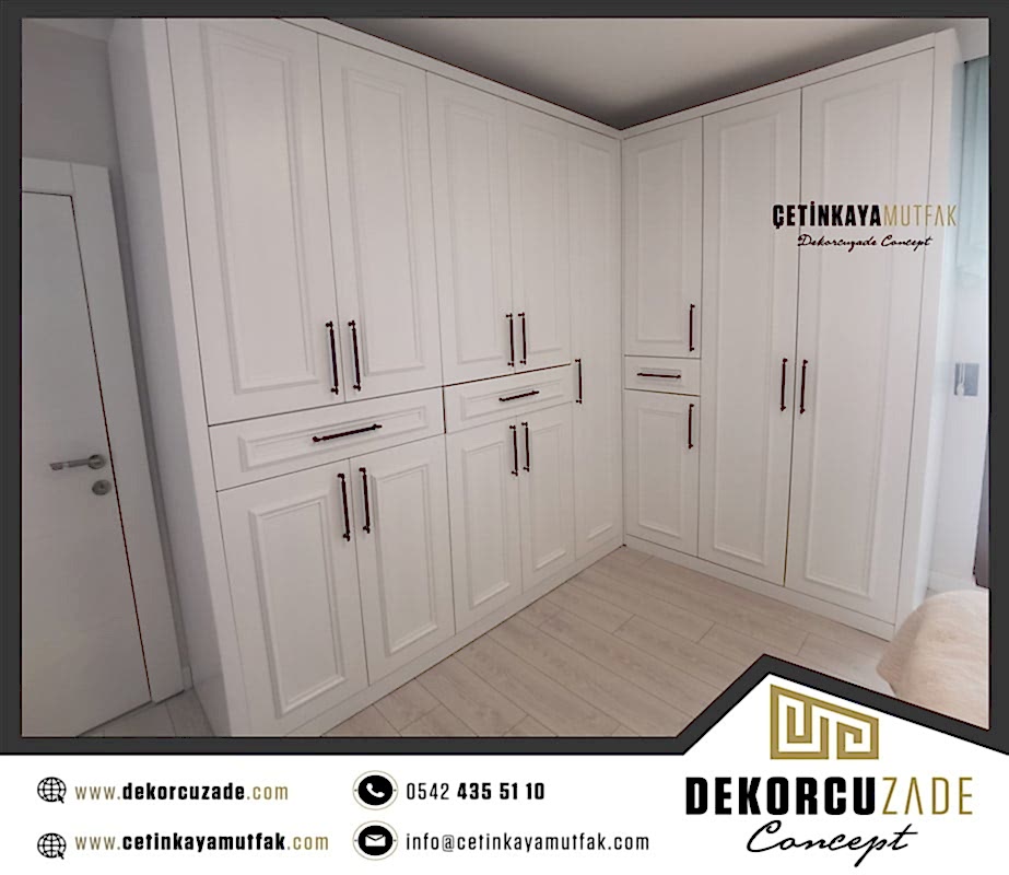 Gardolap ve yüklük dolapları, evlerinizde düzeni sağlamak ve daha fazla depolama alanı sunmak için ideal çözümler sunar. DekorcuZade olarak, gardolap ve yüklük dolaplarınızı estetik ve fonksiyonel hale getiriyoruz. Yüksek kaliteli malzemeler ve işçilik ile dayanıklı ve kullanışlı dolaplar üretiyoruz. İhtiyacınıza ve mekanınıza uygun özel ölçülerde dolaplar tasarlayıp üretiyoruz.