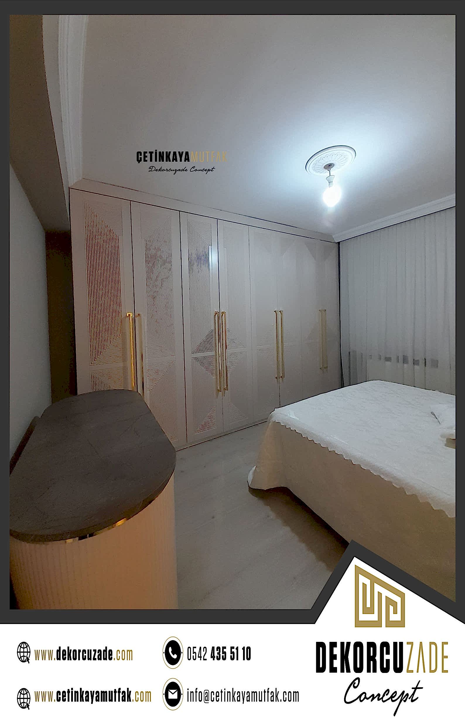 Yatak odalarınızın dekorasyonunu modern trendler ve kişisel zevklerinize uygun şekilde gerçekleştiriyoruz. DekorcuZade Concept olarak, yatak odalarınızı estetik ve fonksiyonel hale getirmek için çeşitli dekorasyon çözümleri sunuyoruz. Mobilya, aydınlatma, aksesuarlar ve renk seçimlerinde profesyonel ekibimizle size en uygun önerileri sunarak, hayalinizdeki yatak odasını gerçeğe dönüştürüyoruz. Ayrıca, kaliteli işçilik ve malzemelerle uzun süre kullanışlı ve keyfinize uygun üretimler yapmak için tasarım ve üretim kriterlerinden taviz vermiyoruz.