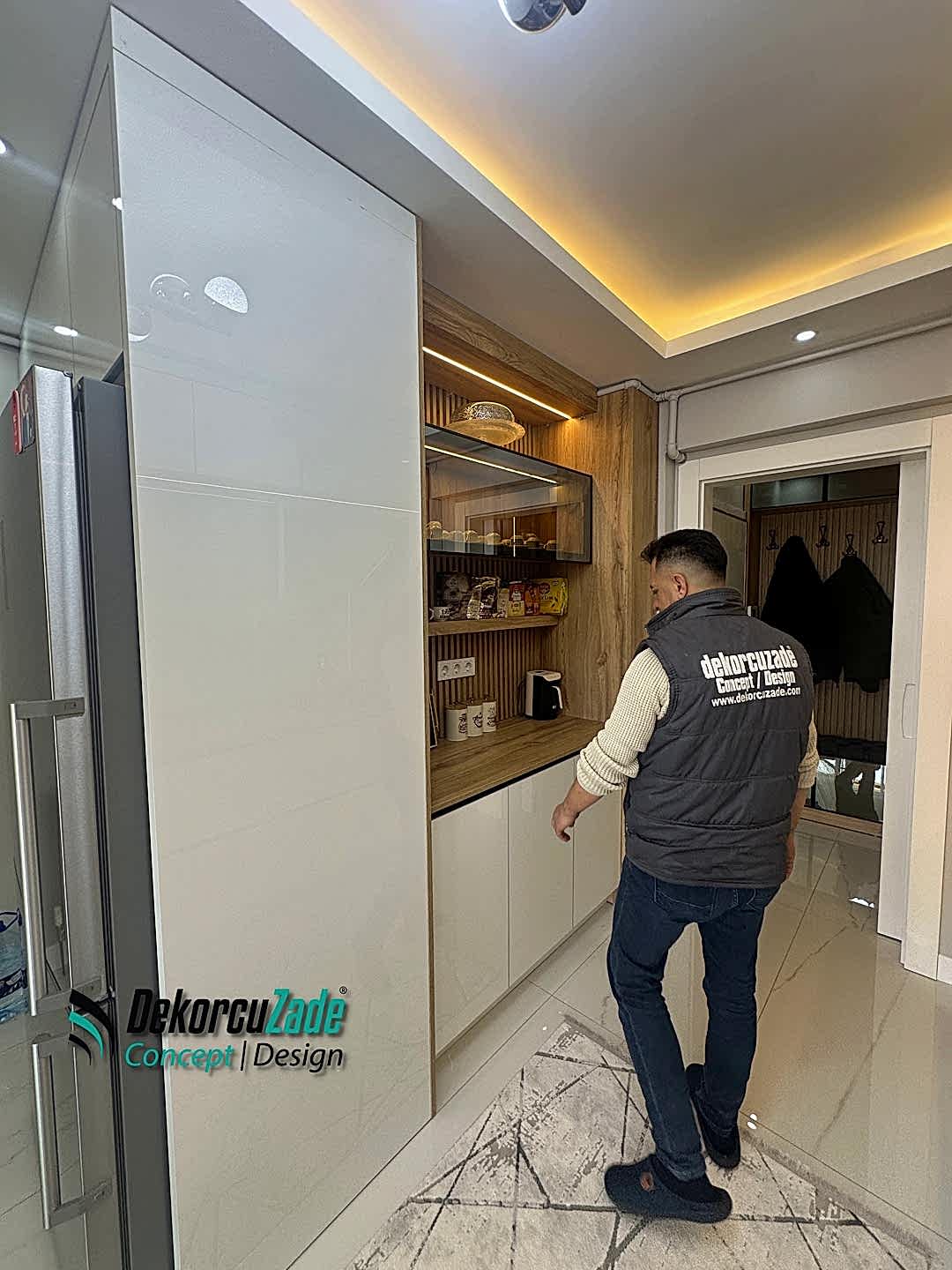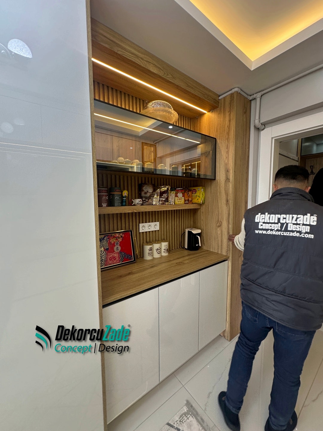 - %100 Yerli Üretim ve Özel Tasarım: Evdeki tüm mobilya ve dolap grupları, DekorcuZade’nin Ankara’daki modern üretim tesislerinde, %100 yerli üretimle ve evin her köşesine özel ölçülerde tasarlandı. Her bir parça, yılların verdiği tecrübe ve usta işçilikle hayat buldu.