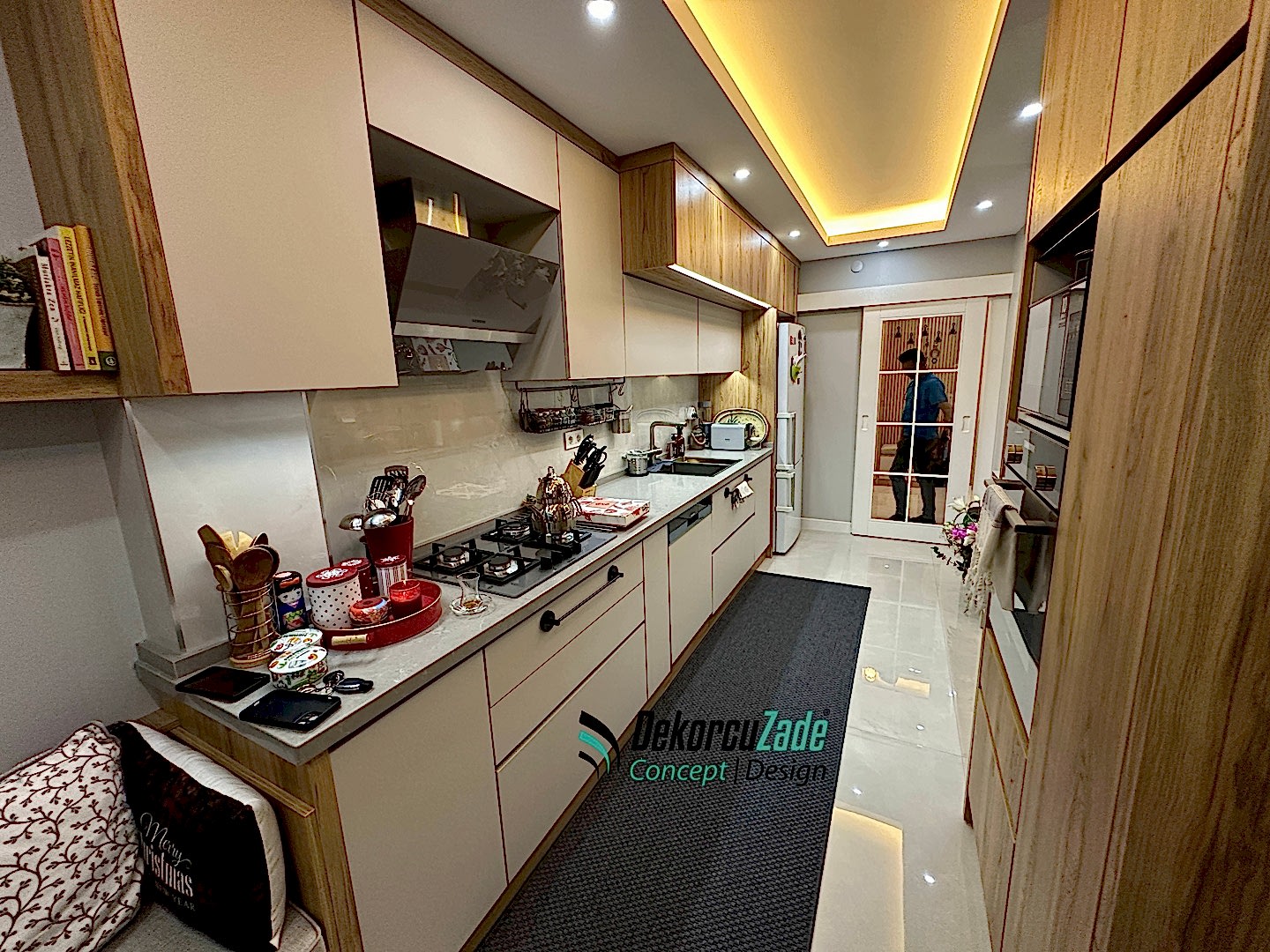 Dekorcuzade Concept olarak, Çayyolu Konutkent Konut 2 Sitesi’ndeki eski dairemizi baştan sona yenileyerek modern, estetik ve işlevsel bir yaşam alanı oluşturduk. Anahtar teslim dekorasyon sürecimizde yüksek mobilya mimarisi ile tüm dolaplar, kapılar, mutfak, banyo ve salon mobilyalarını en ince ayrıntısına kadar tasarlayıp yeniledik. Mekânın atmosferini tamamlayan tavan, zemin ve duvar dokularını özenle güncelleyerek, yaşam alanına yeni bir soluk kazandırdık.