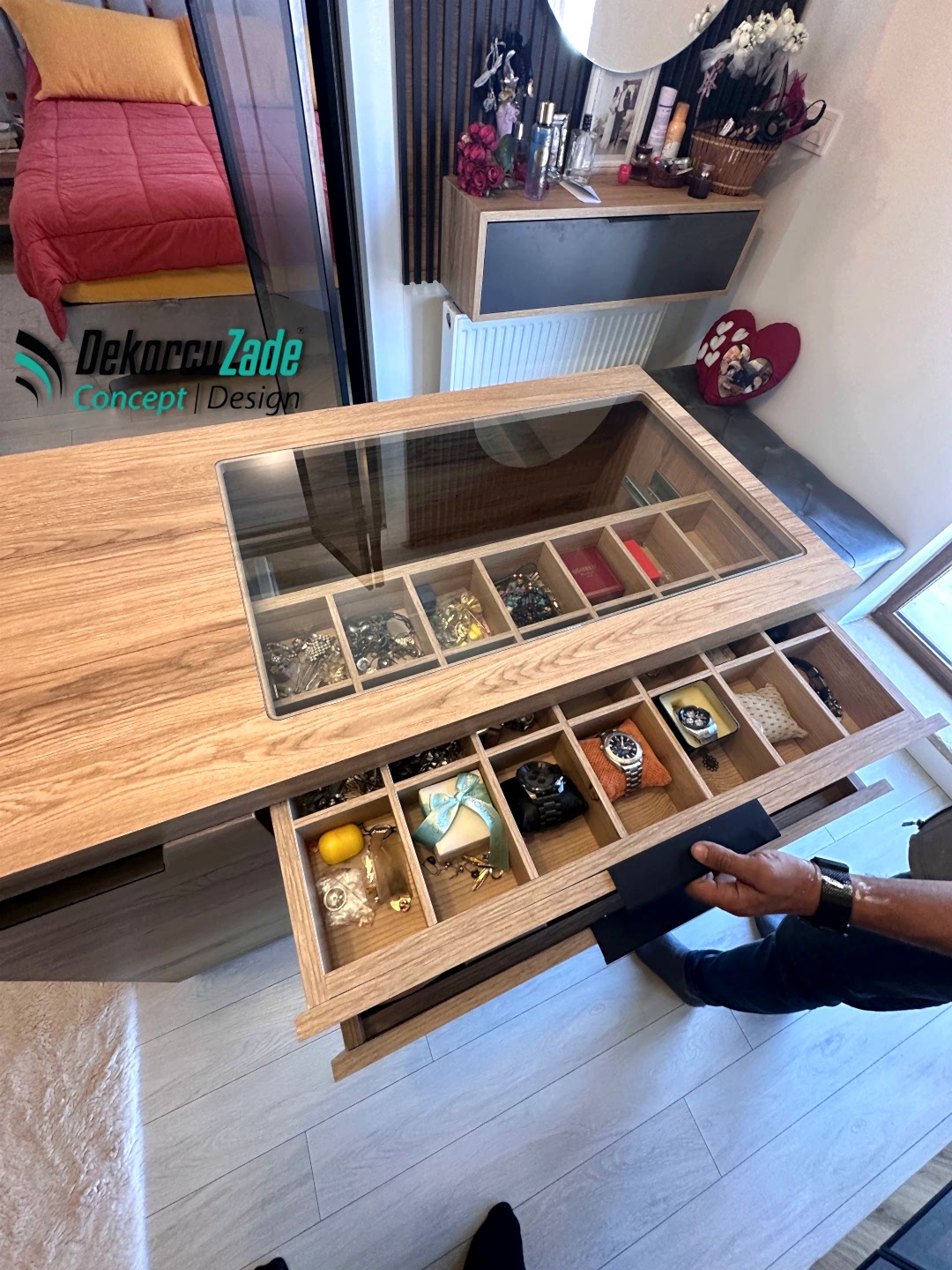 Tüm mobilyalar, Ankara Siteler’deki 2000 m² üretim tesisimizde %100 yerli üretim anlayışıyla özel ölçülerde imal edildi. Üretilen mobilyalar arasında: