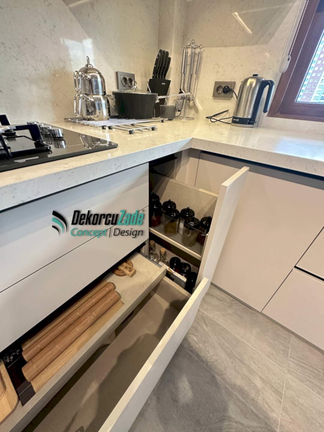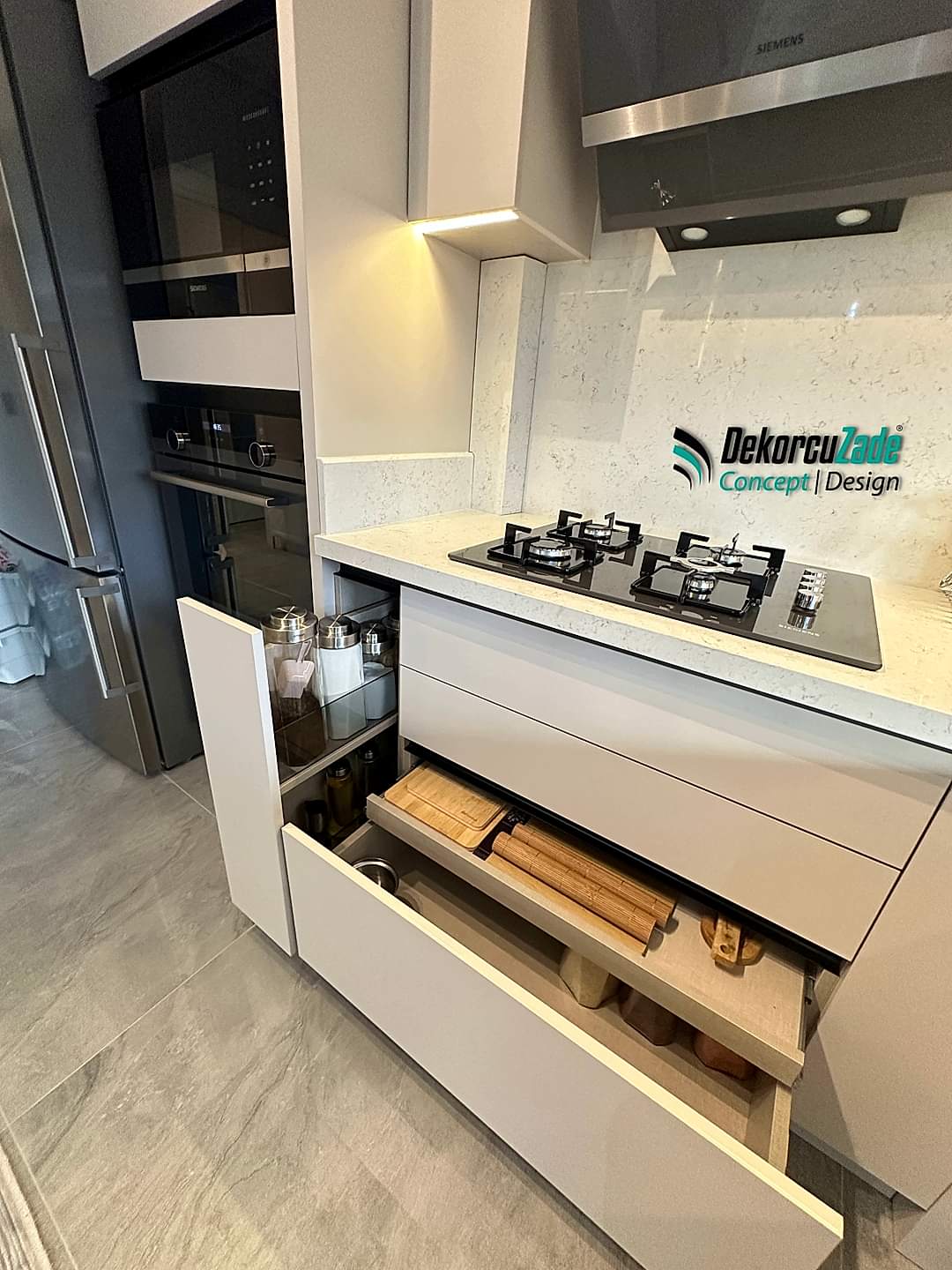 👉 Özellikle Ankara mutfak dolabı tasarımlarında suya ve neme dayanıklı yüzey kaplamaları, yavaş kapanır mekanizmalar ve yüksek dayanımlı gövde sistemleri tercih edildi.