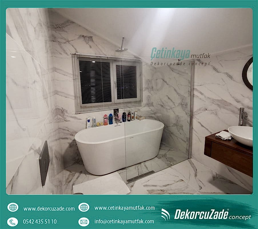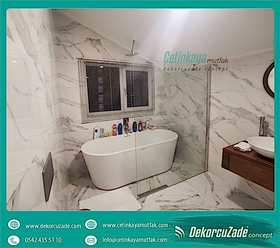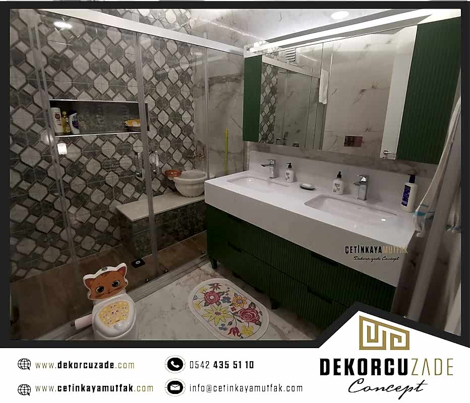 DekorcuZade Concept olarak banyonuzda şıklığı ve dayanıklılığı bir arada sunuyor, size özel çözümlerle konforu evinize getiriyoruz. Banyonuzda hayal ettiğiniz tasarımlar için bizimle iletişime geçin!