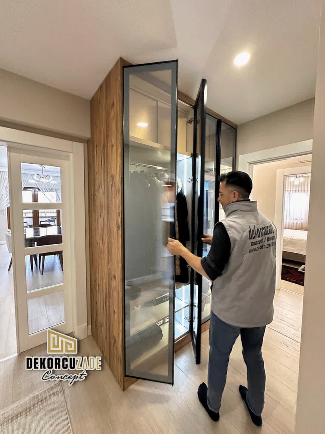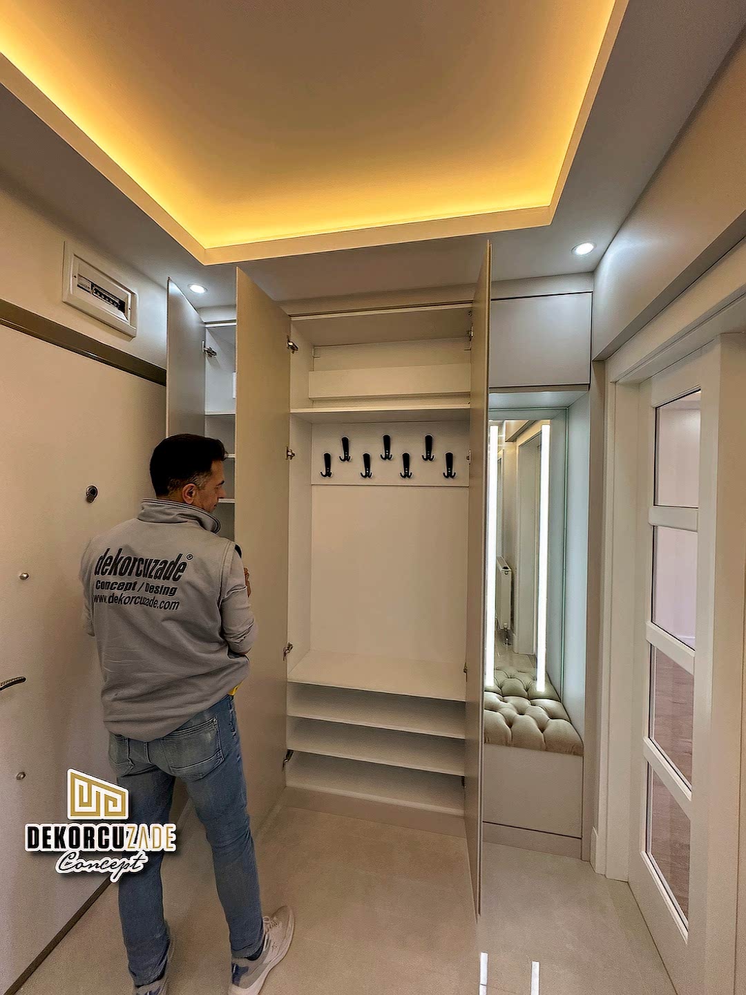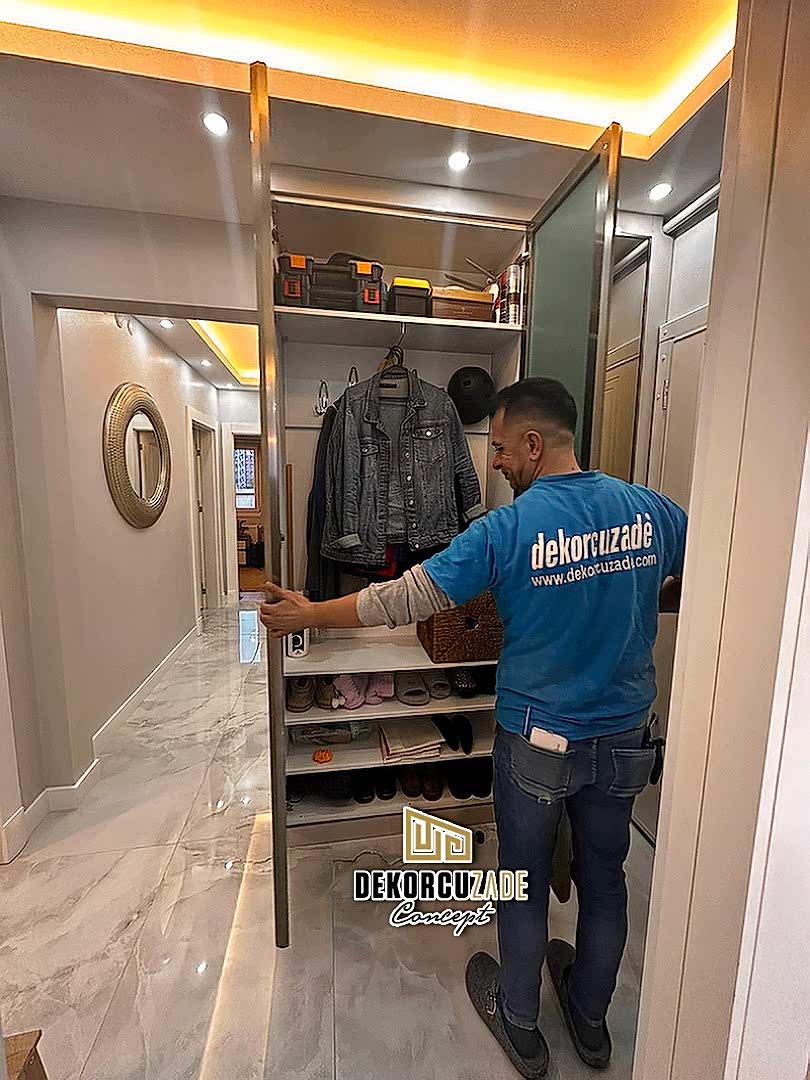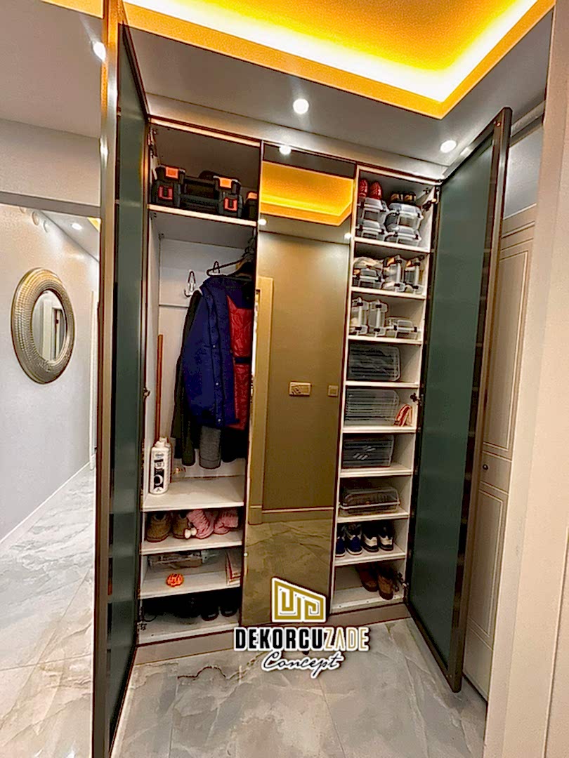 Dekorcuzade olarak, hazır dolap satmıyoruz. Tüm portmanto ve yüklük dolapları, müşterilerimizin ölçü ve ihtiyaçlarına göre özel olarak tasarlanmaktadır. Her model, projeye ve beğenilen tasarıma göre kişiye özel olarak üretilir.