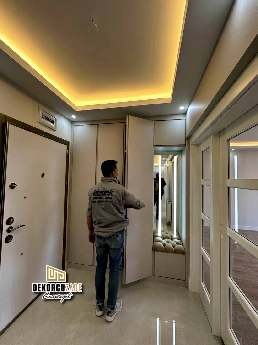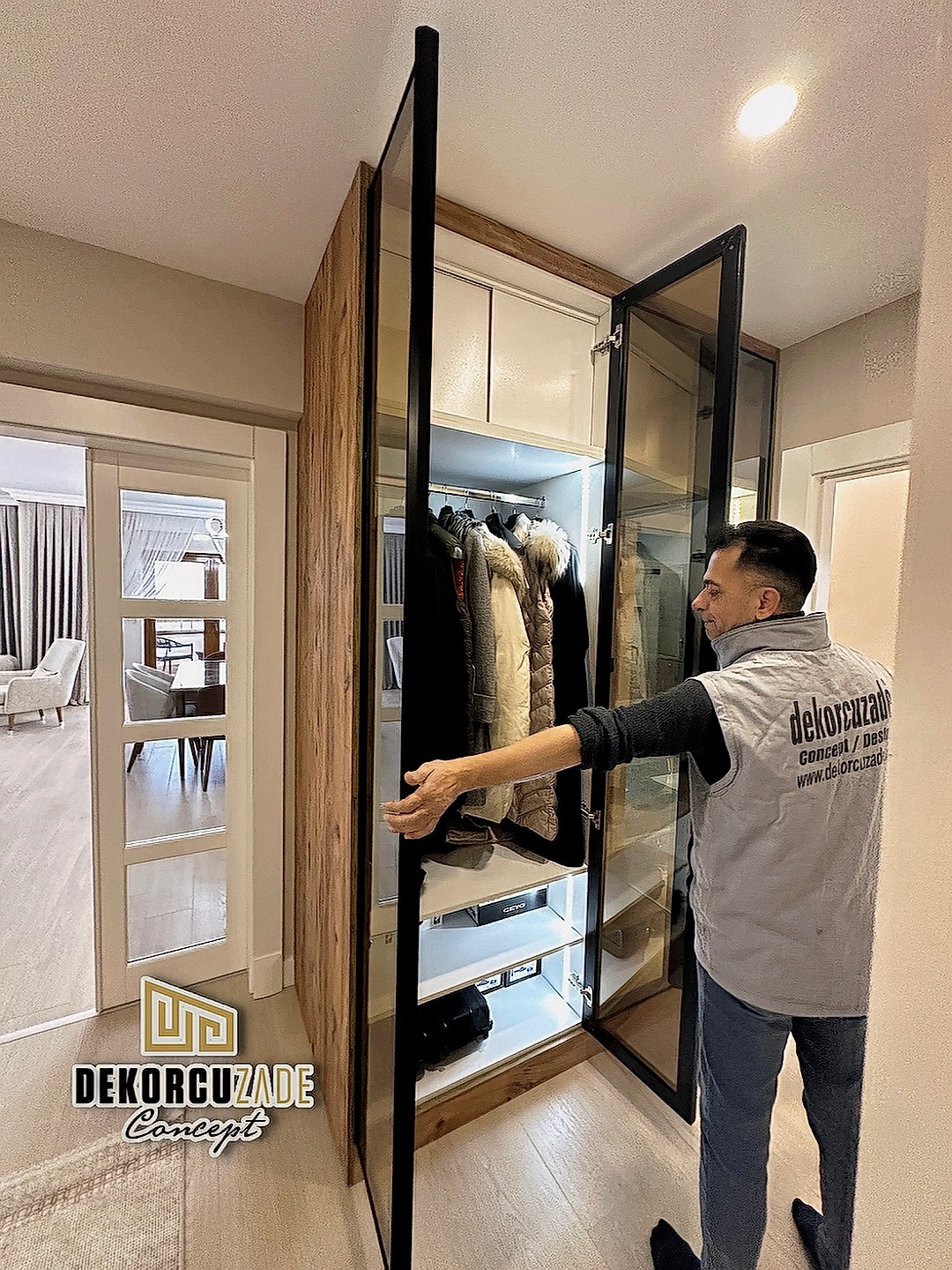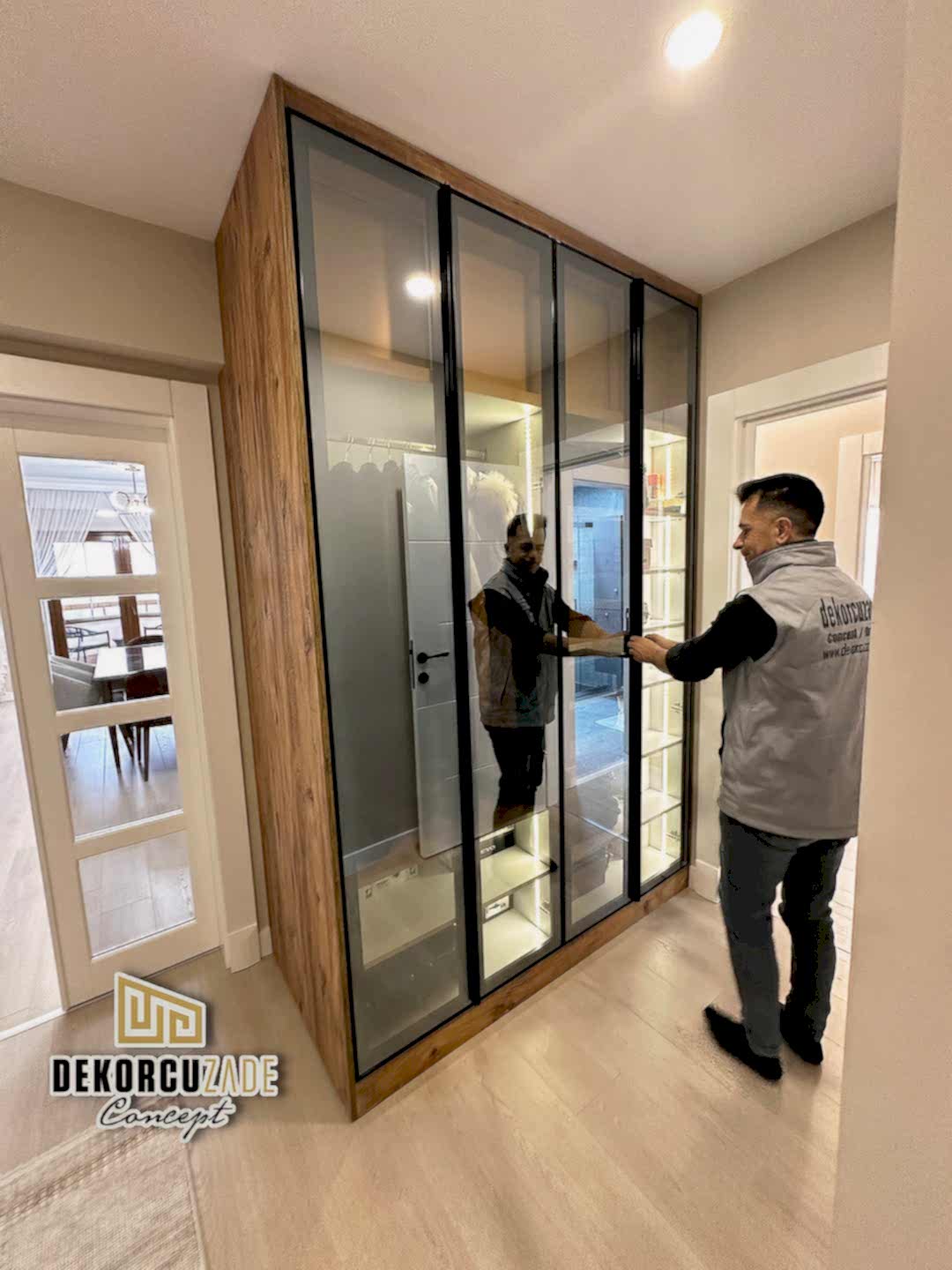 Dekorcuzade olarak, hazır dolap satmıyoruz. Tüm portmanto ve yüklük dolapları, müşterilerimizin ölçü ve ihtiyaçlarına göre özel olarak tasarlanmaktadır. Her model, projeye ve beğenilen tasarıma göre kişiye özel olarak üretilir.