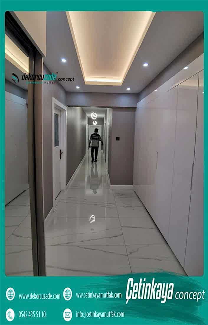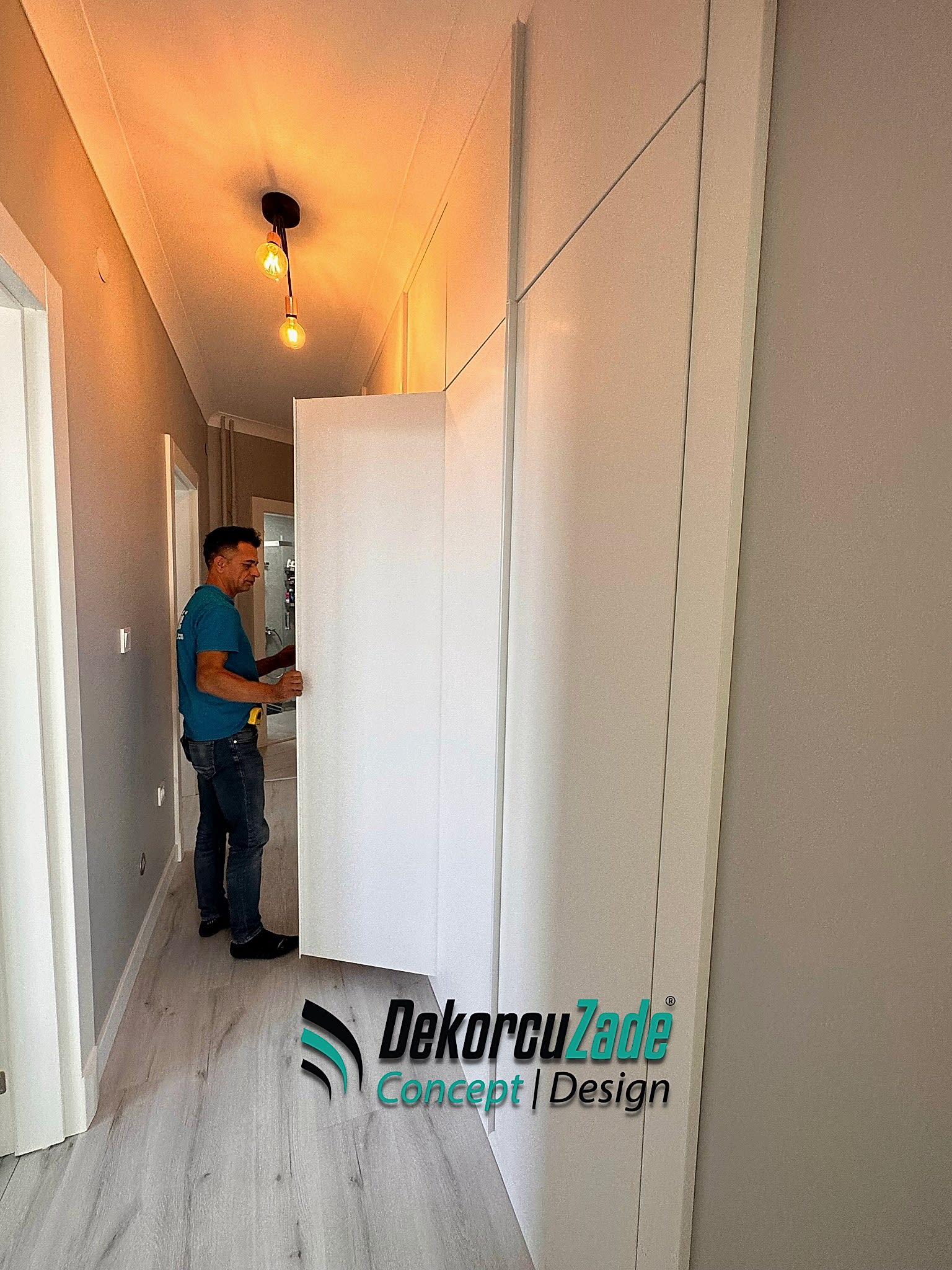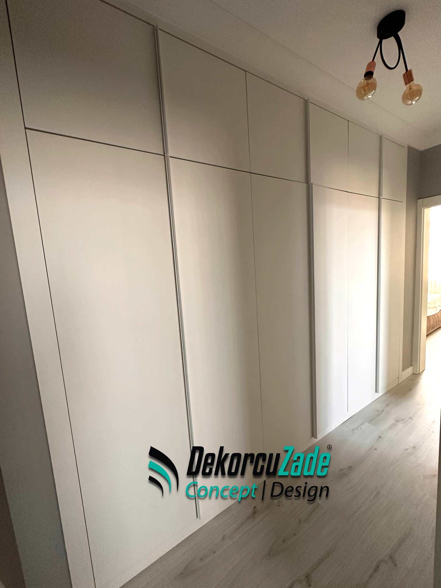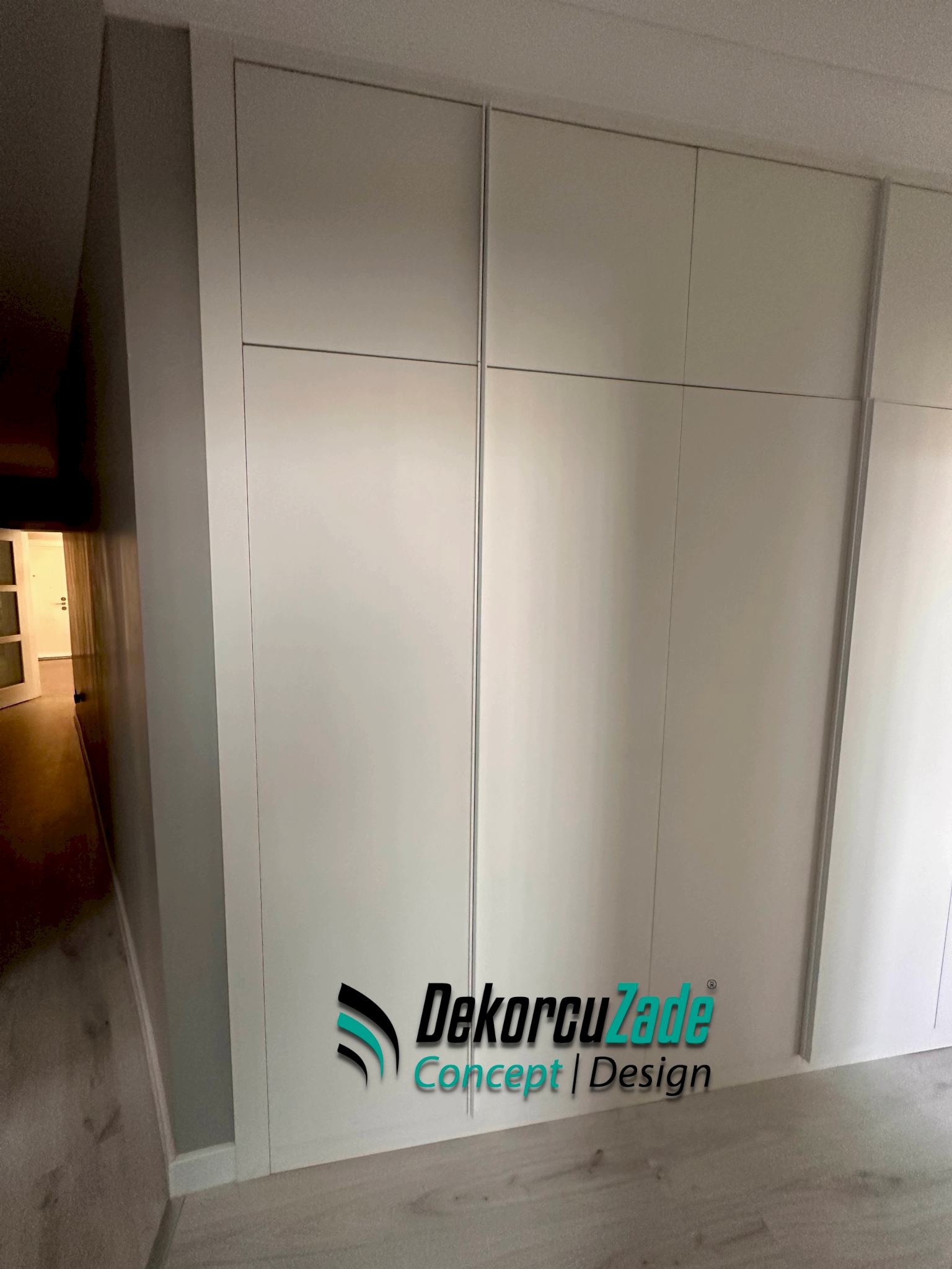 Dekorcuzade olarak, hazır dolap satmıyoruz. Tüm gömme dolap ve yüklük dolapları, müşterilerimizin ölçü ve ihtiyaçlarına göre özel olarak tasarlanmaktadır. Her model, projeye ve beğenilen tasarıma göre kişiye özel olarak üretilir.